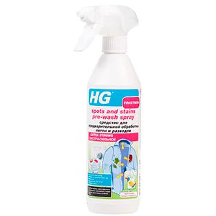 HG экстрасильное средство для предварительной обработки пятен и разводов обогащено активным кислородом, поэтому оно может удалять даже самые стойкие пятна от красного вина, чая, фруктового сока, шоколада, соуса, шпината, травы, земли и т.п. Этот специальный состав в удобной форме пены-аэрозоля подходит практически для всех типов тканей.