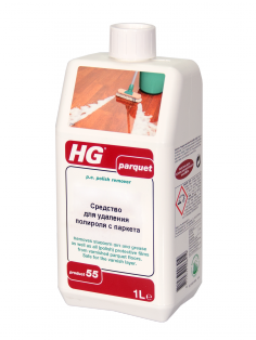 Для удаления старых слоев полироля используйте средство концентрированным. Для очистки пола разведите средство с водой в пропорции 1:5 (1 часть средства, 5 частей воды). Обильно нанесите средство на пол. Оставьте действовать на несколько минут. Затем потрите пол, регулярно прополаскивая салфетку для мытья пола. Тщательно помойте пол чистой водой, хорошо отжимая салфетку для мытья пола во избежание набухания пола. При необходимости повторите обработку. Перед нанесением нового слоя HG «Полироля для паркета» дайте полу высохнуть в течение 2 часов.